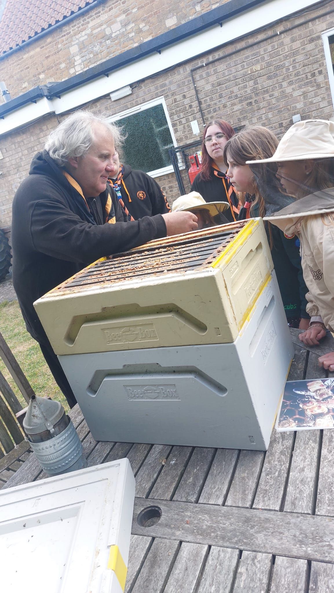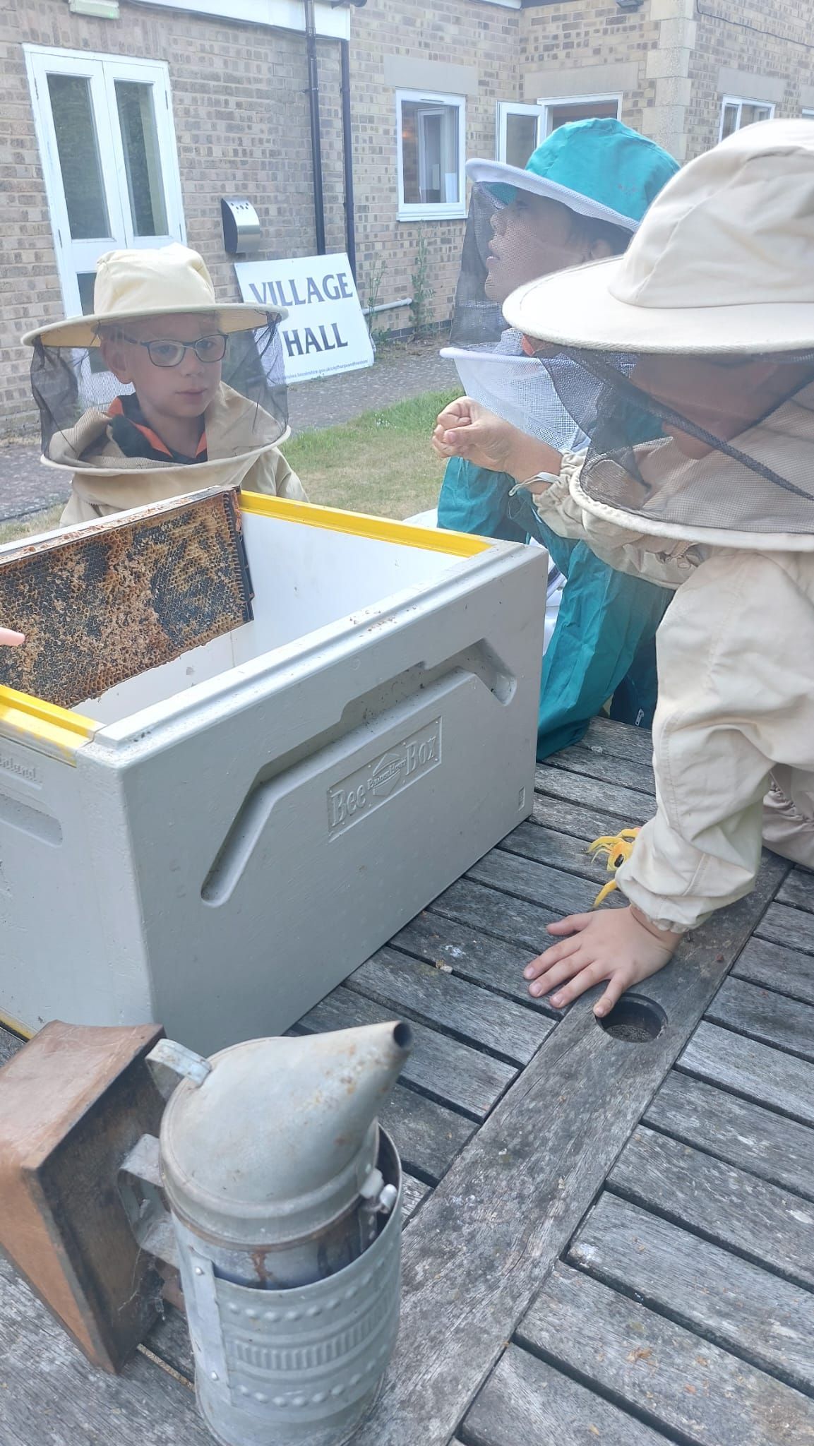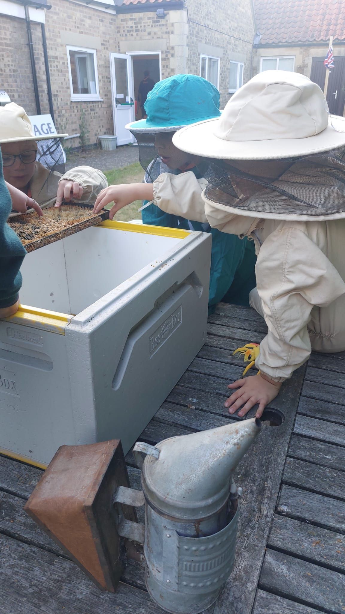 The Cubs tried on bee suits and discovered how bees are kept and how the honey is extracted. They were surprised that in the summer, 99% of bees are female and carry out all the work in the hive!