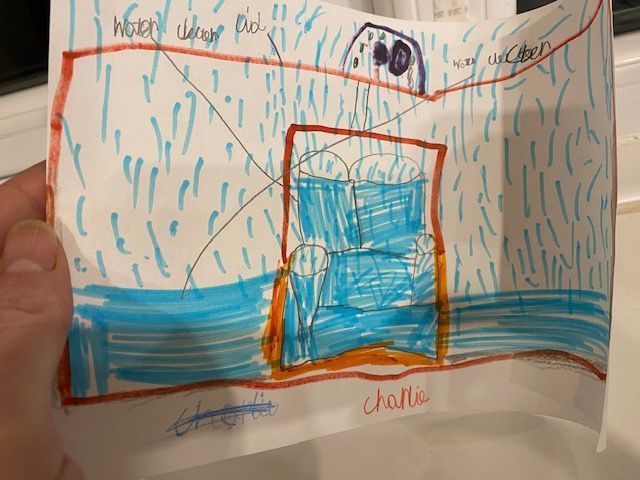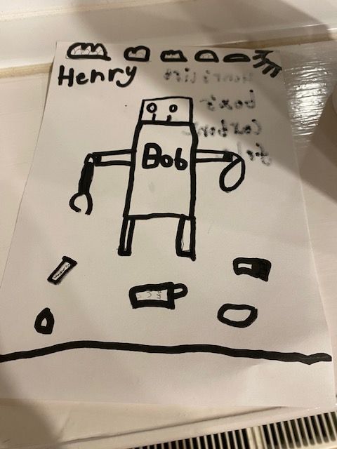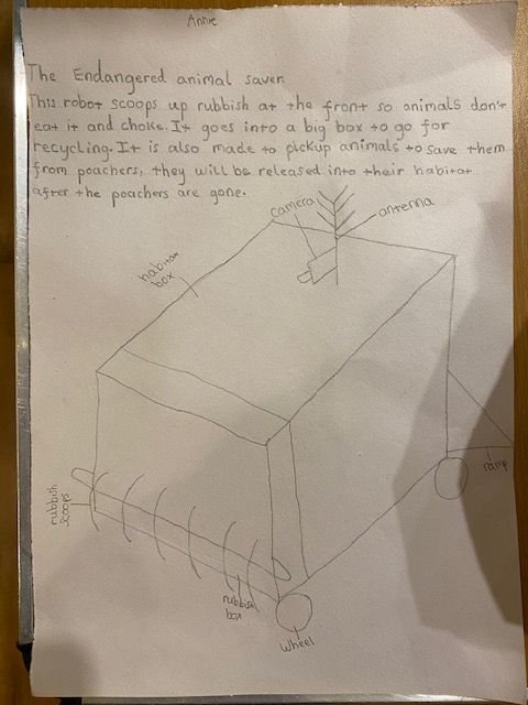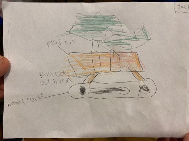 They had to think about the problem, design the solution, and create a list of materials required to build their machine. (Parents were also briefed to collect toilet rolls and empty milk bottles, cartons and boxes.)