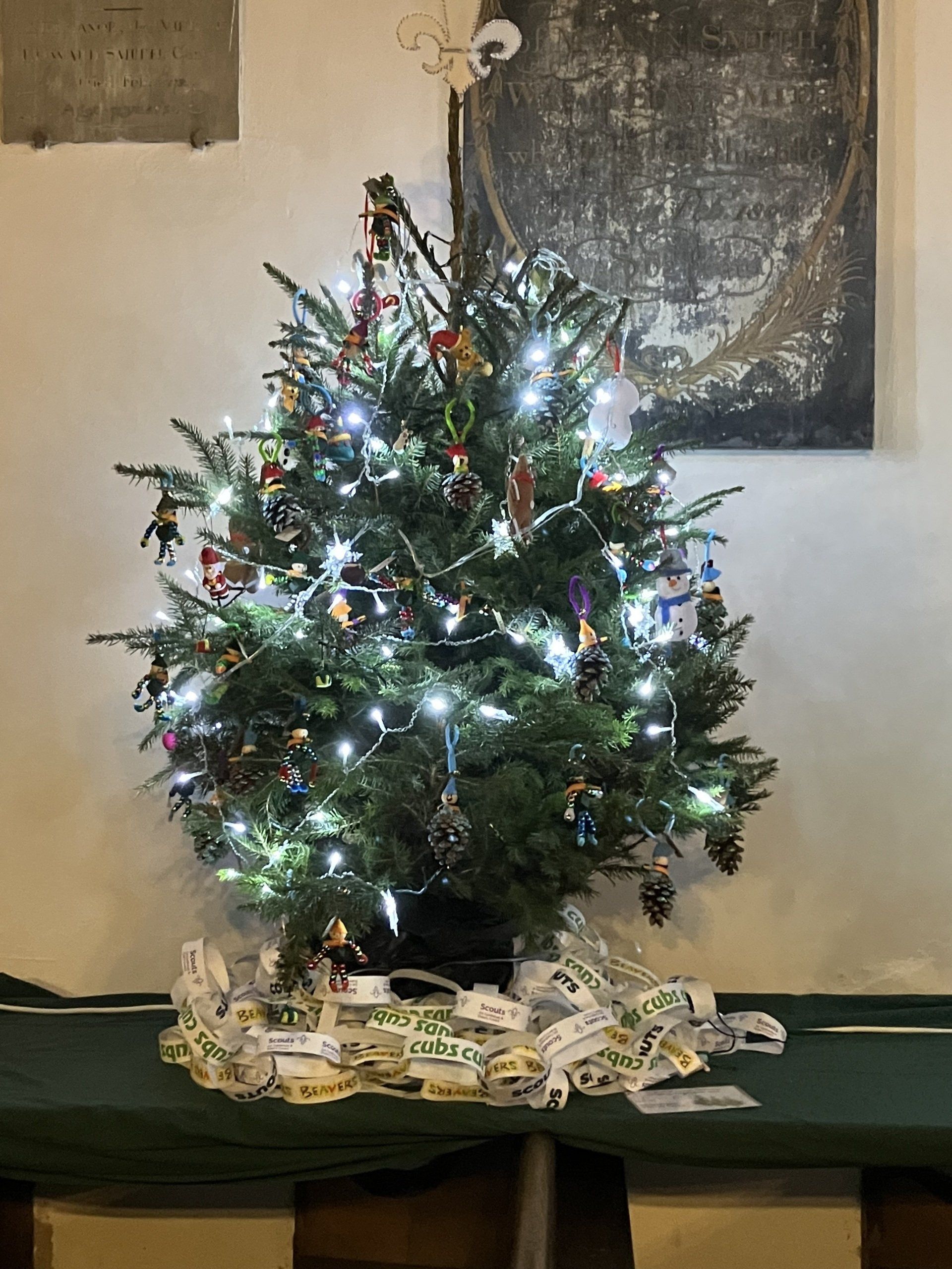 Hot on the heels of the Awards Ceremony was the Carol Service in Caythorpe. Our Beavers, Cubs and Scouts (not to mention Leaders, especially Leela!) have spent a lot of time over recent weeks preparing our Group Christmas Tree while also supporting St. Vincent's Church. Each child and Leader made at least one decoration – beautifully crafted with black and orange neckers, of course – to hang from our tree. We were absolutely delighted to find out that we had won the competition, with a very welcome prize of a tub of chocolates, which we’ll share at our forthcoming Christmas Party! We all enjoyed joining in the carols and having a chat over a mince pie at the end of the service.